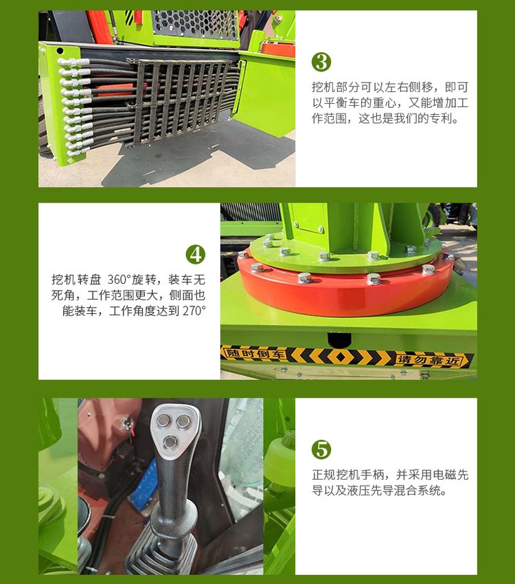 便于操縱的挖掘動臂鎖定機(jī)構(gòu)和挖掘裝置過中點的特殊設(shè)計,使設(shè)備運輸更 安全,行駛更平衡。